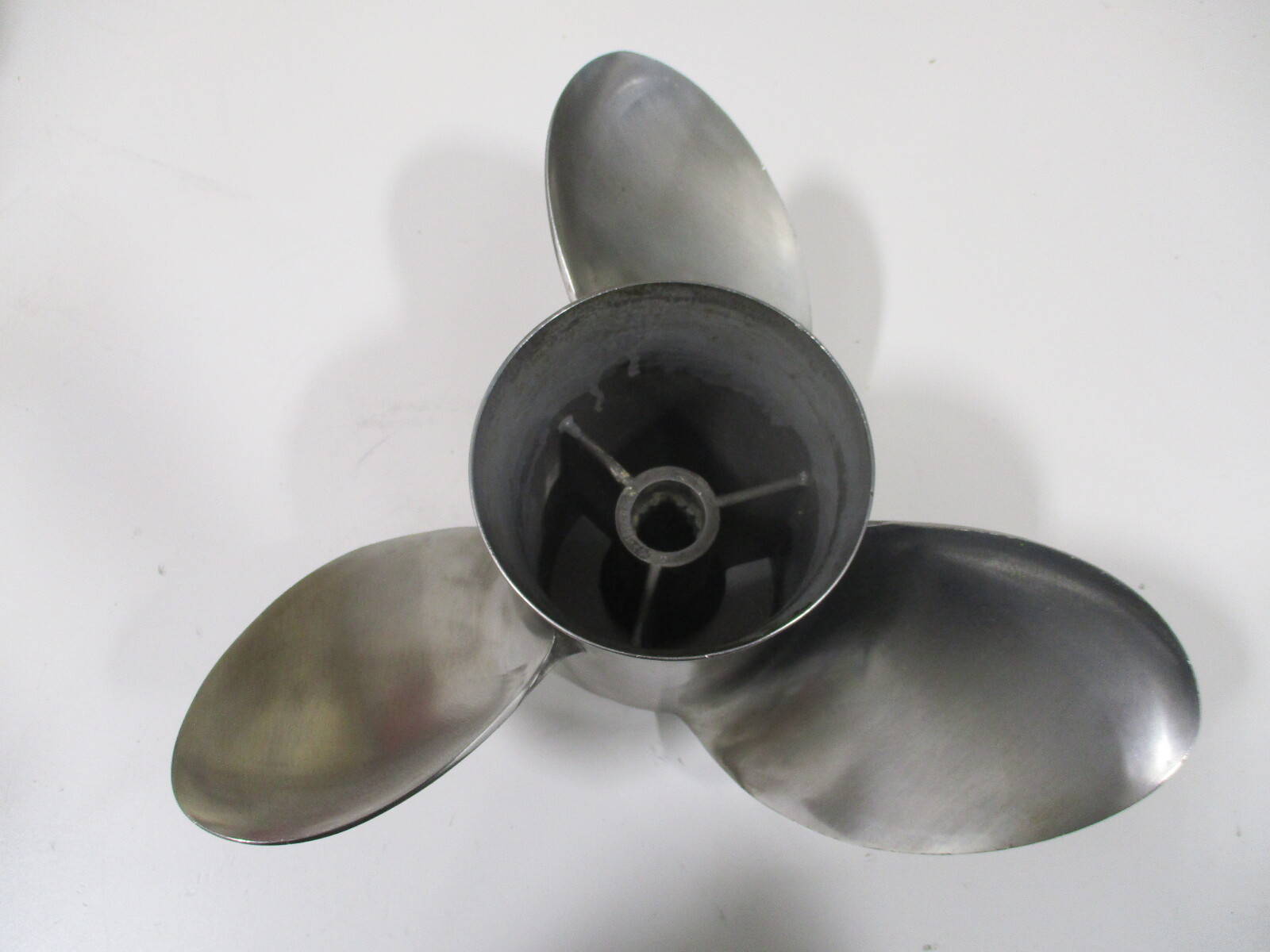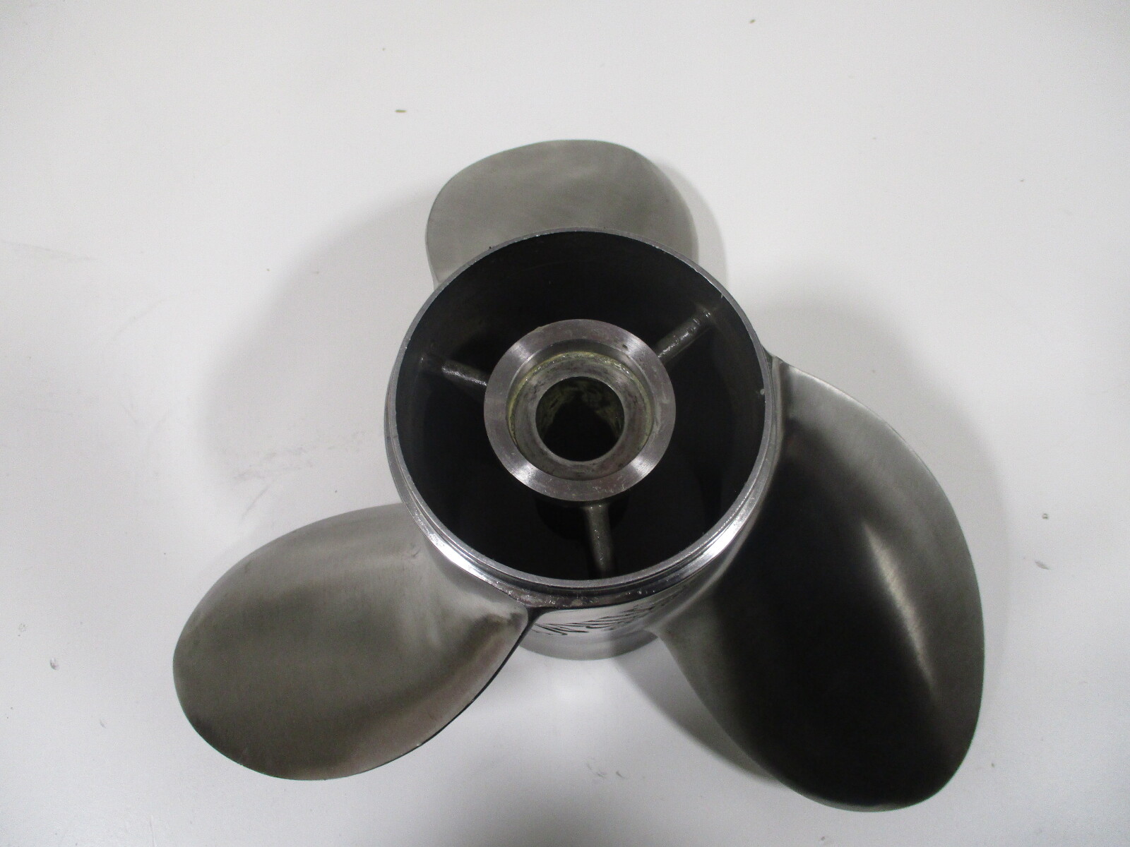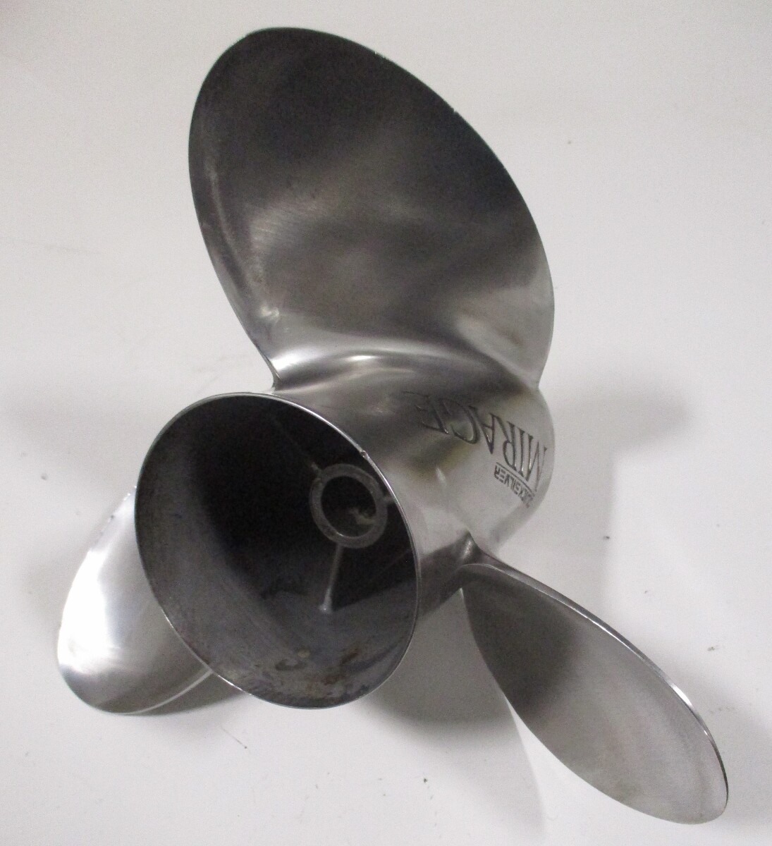 This sale is for one Used Mercury Quicksilver Bravo One Mirage Solid hub Stainless Steel Propeller.