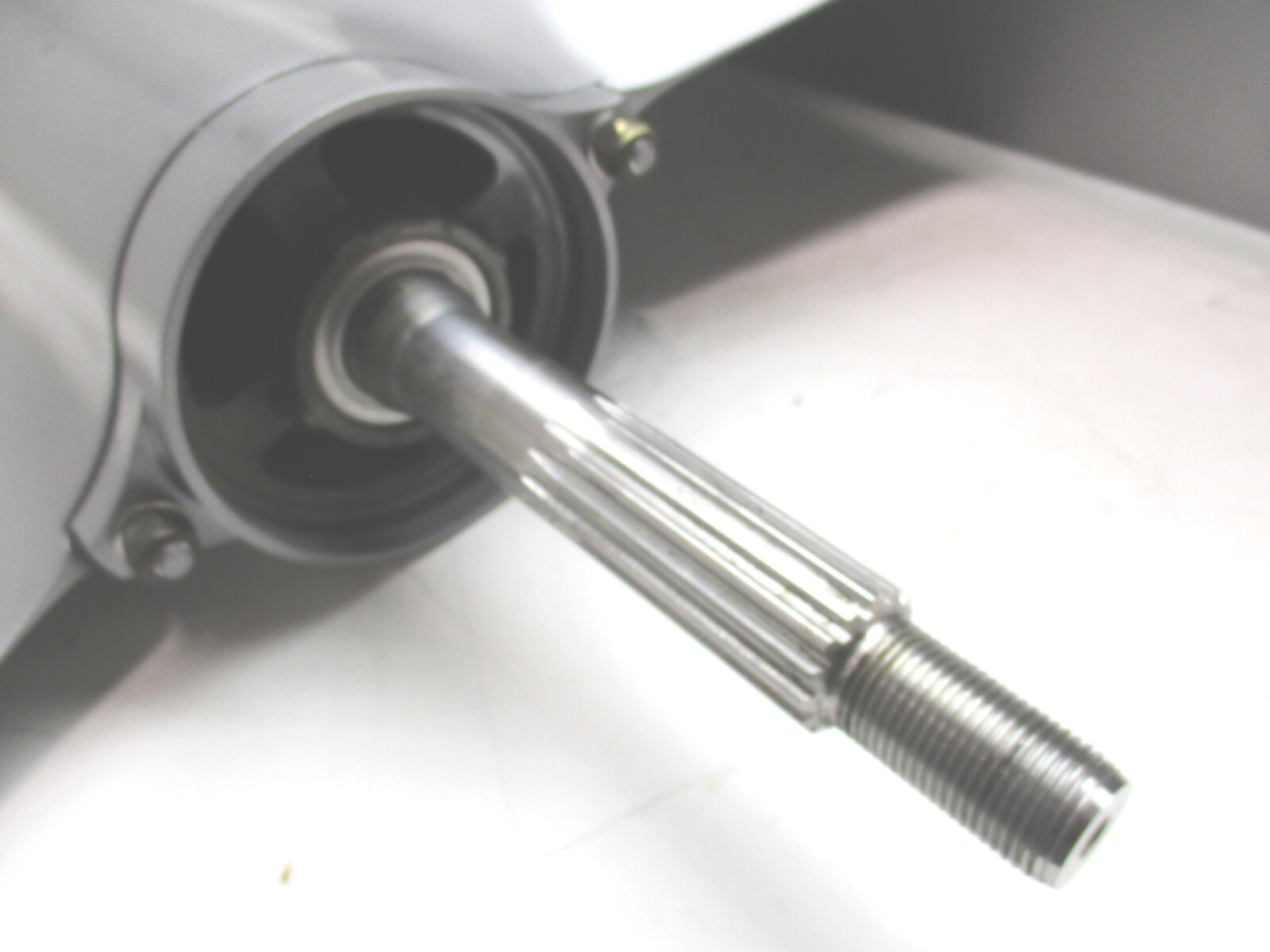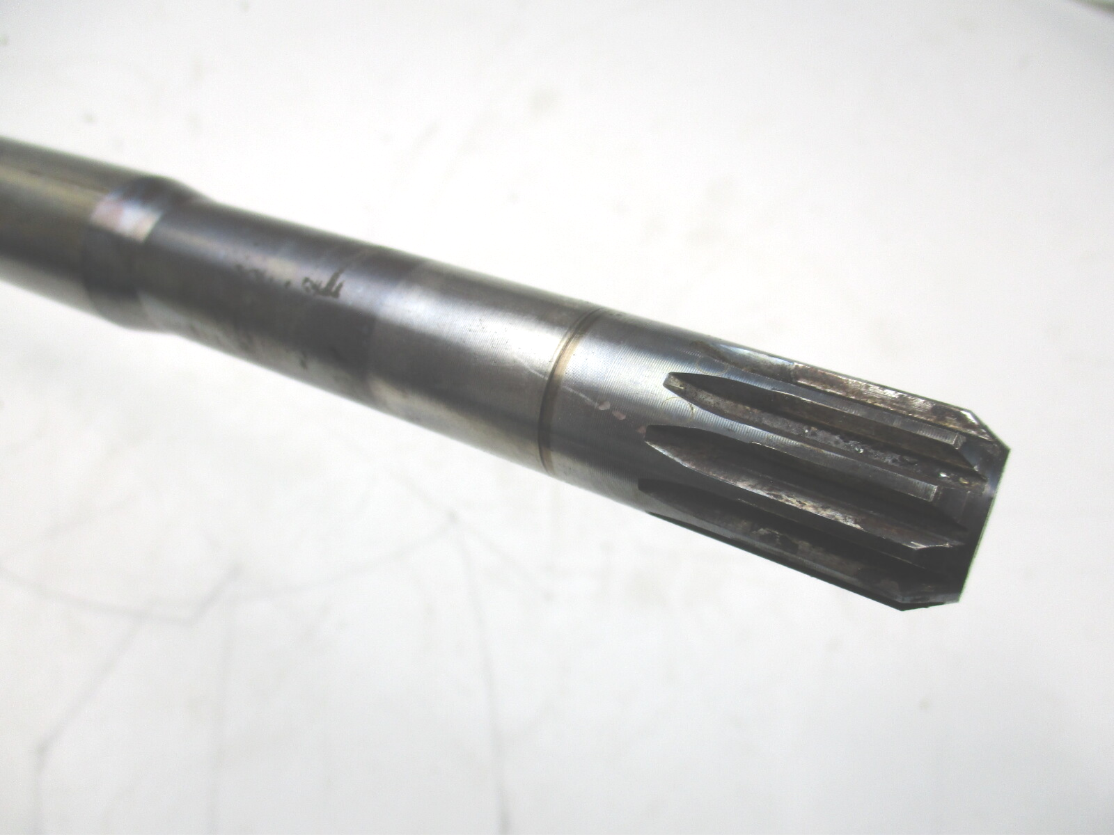 The drive shaft measures 22 1/8 inches from the case (base of the water pump housing) to the tip and has 11 splines. This is the long shaft. The prop shaft has 15 splines. This is the Bigfoot lower unit with a 6 jaw reverse.
