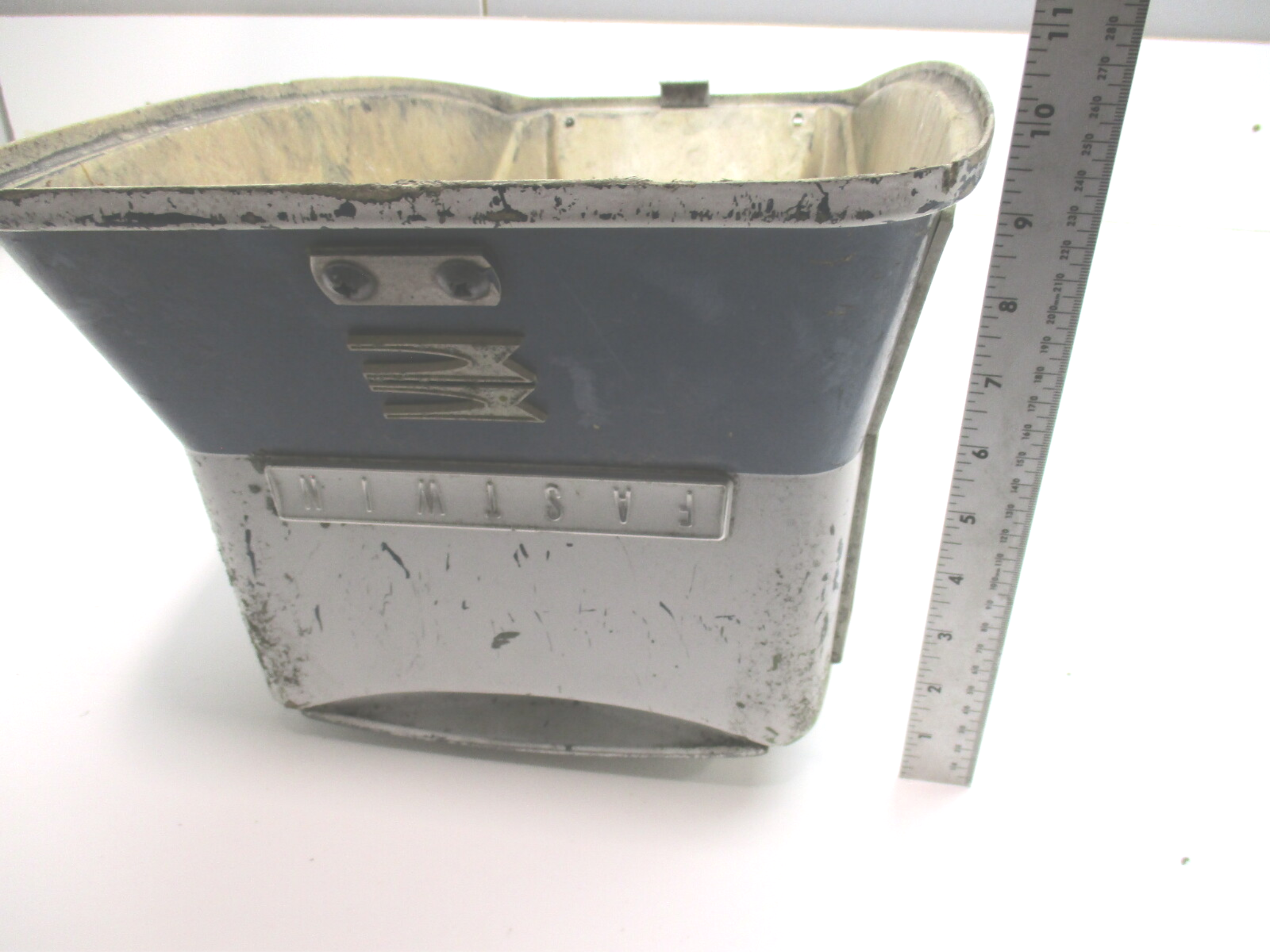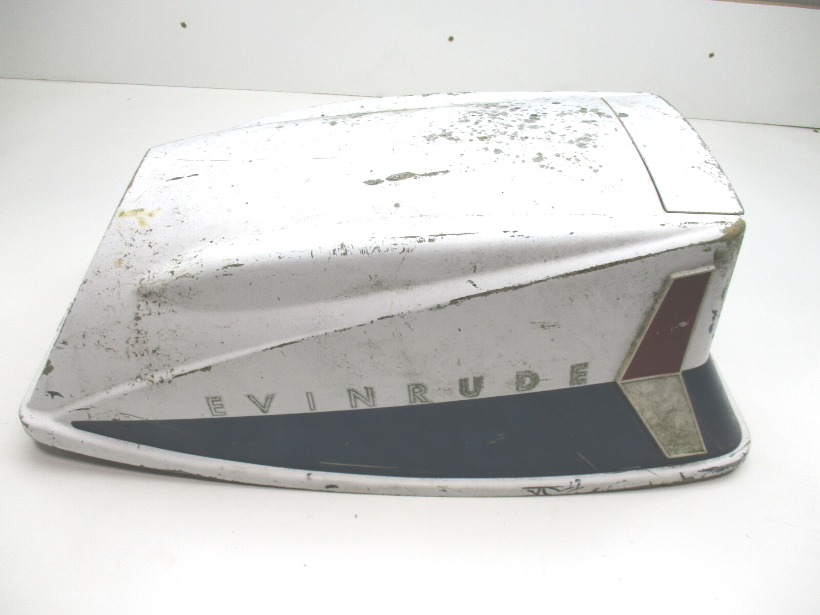 The Evinrude Johnson Cowl is in good condition with some chips and scratches but there are no cracks in it.