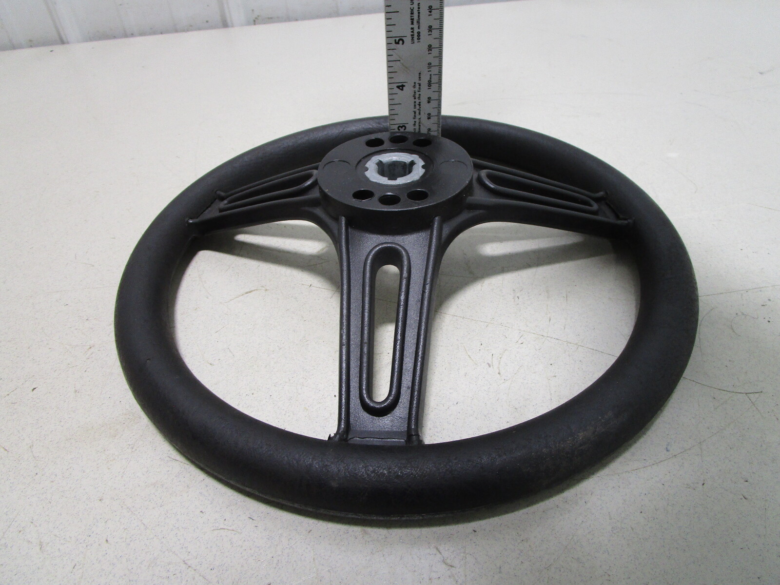 This Glastron steering wheel is in good used condition.