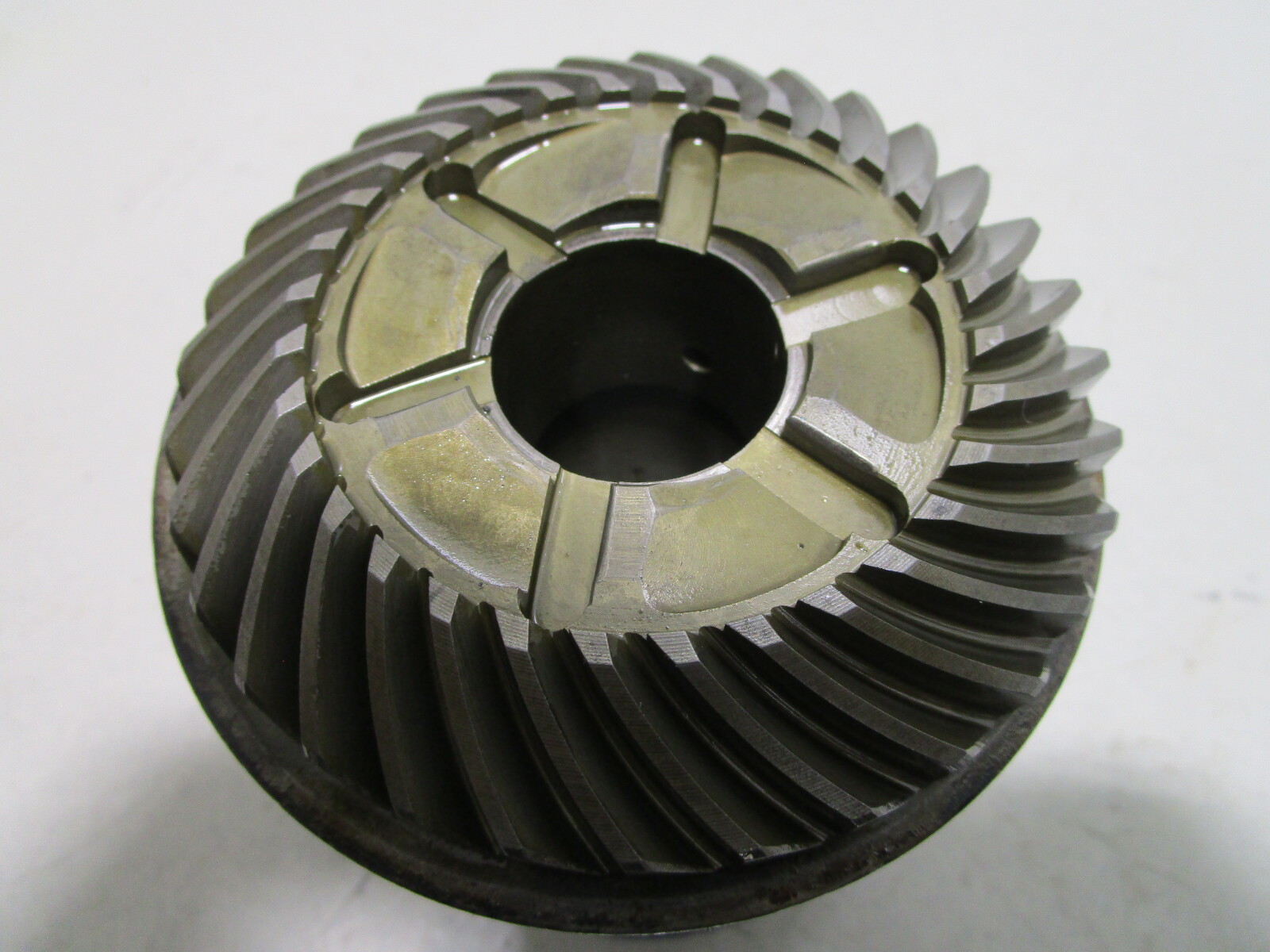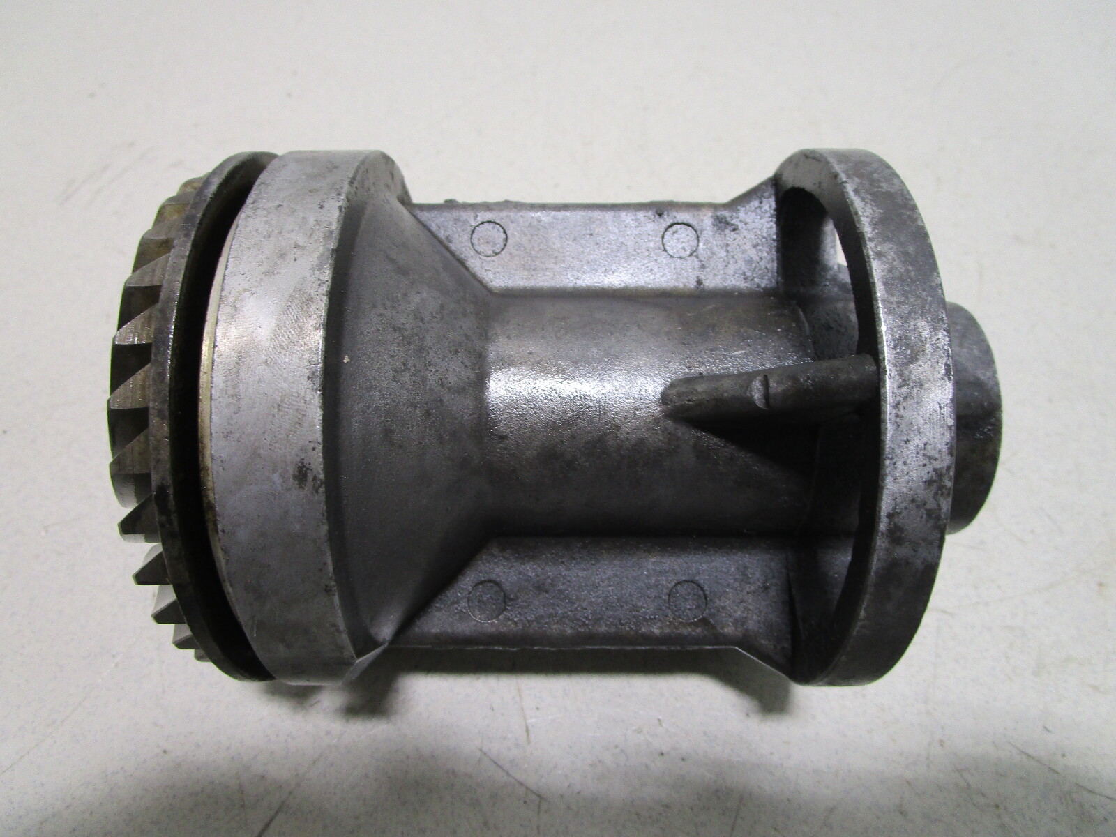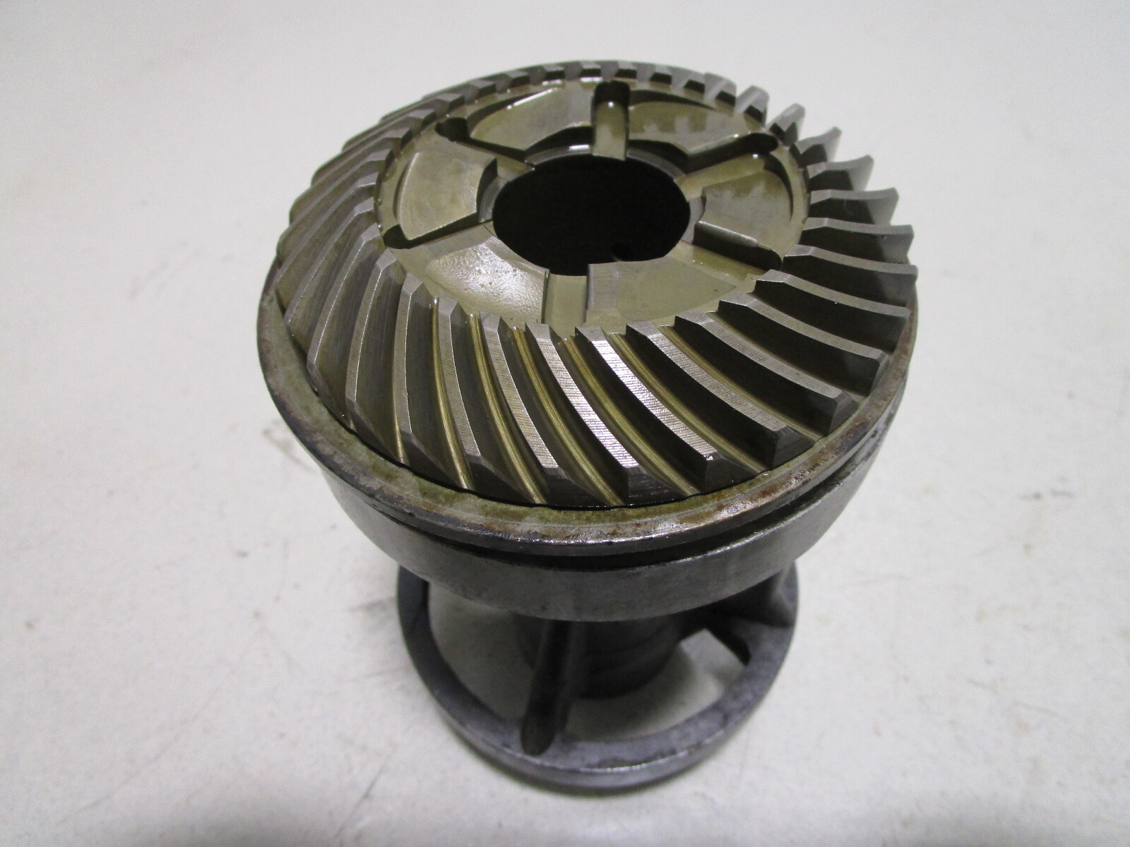 This bearing carrier and reverse gear are in good used condition. This is a fresh water part and it is not corroded.
