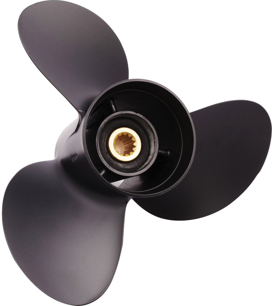 3 Blade aluminum propeller for 60-140 horsepower engines with 13 tooth spline and thru hub exhaust.