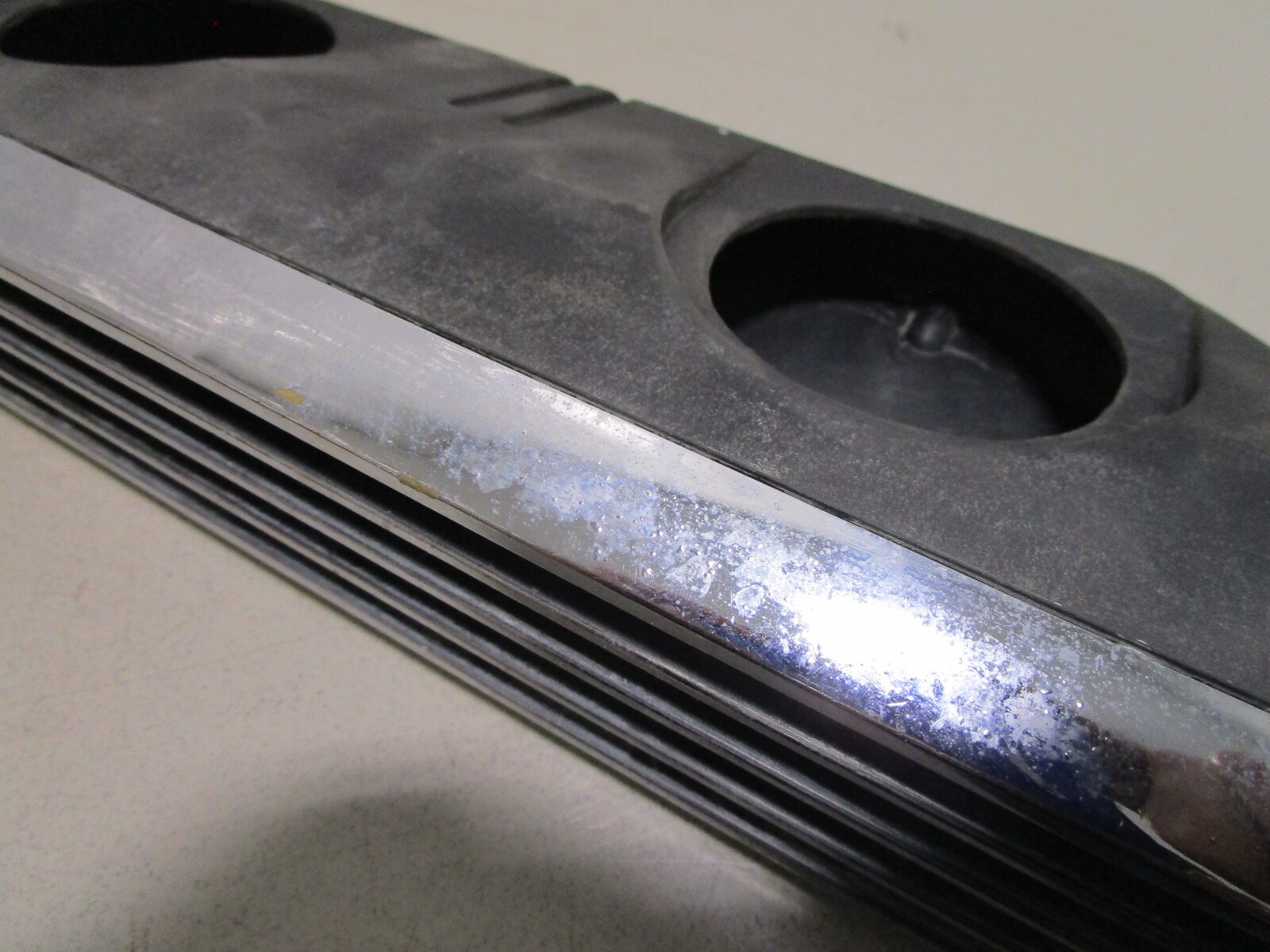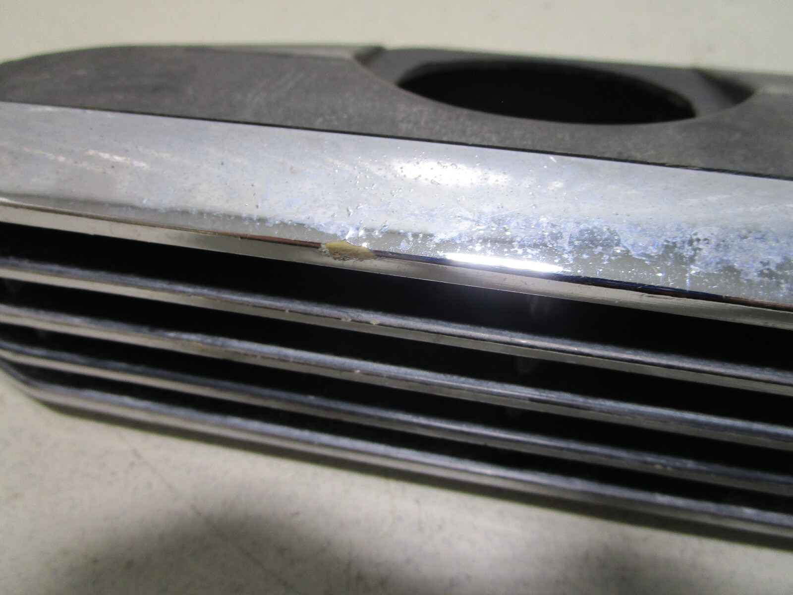 The used louvered boat vent cover is made from chromed plastic and may have a couple little dings on it. There are no major cracks in it.