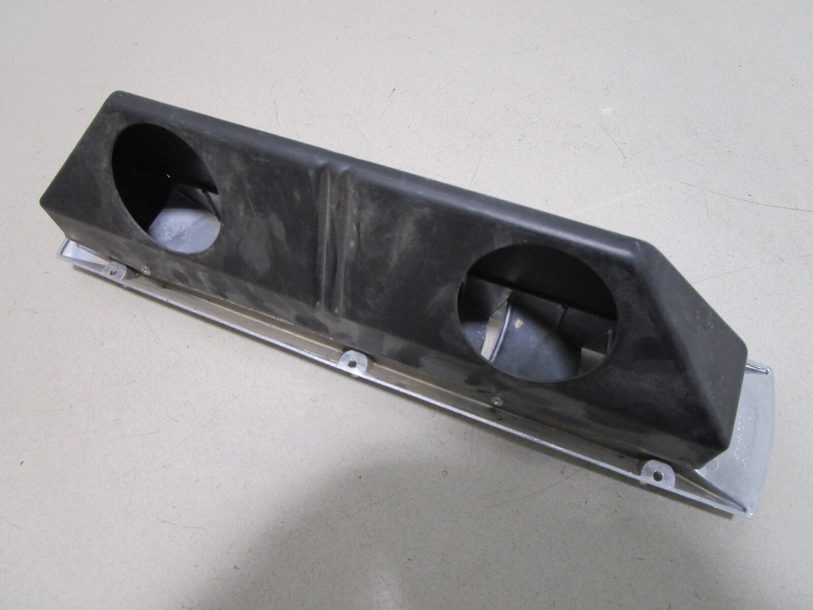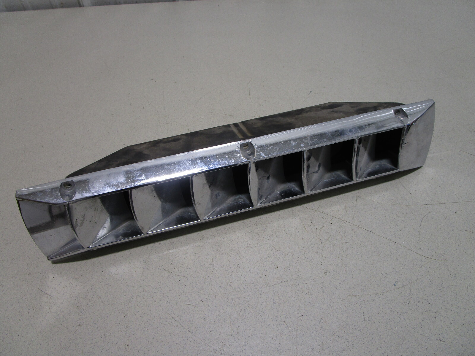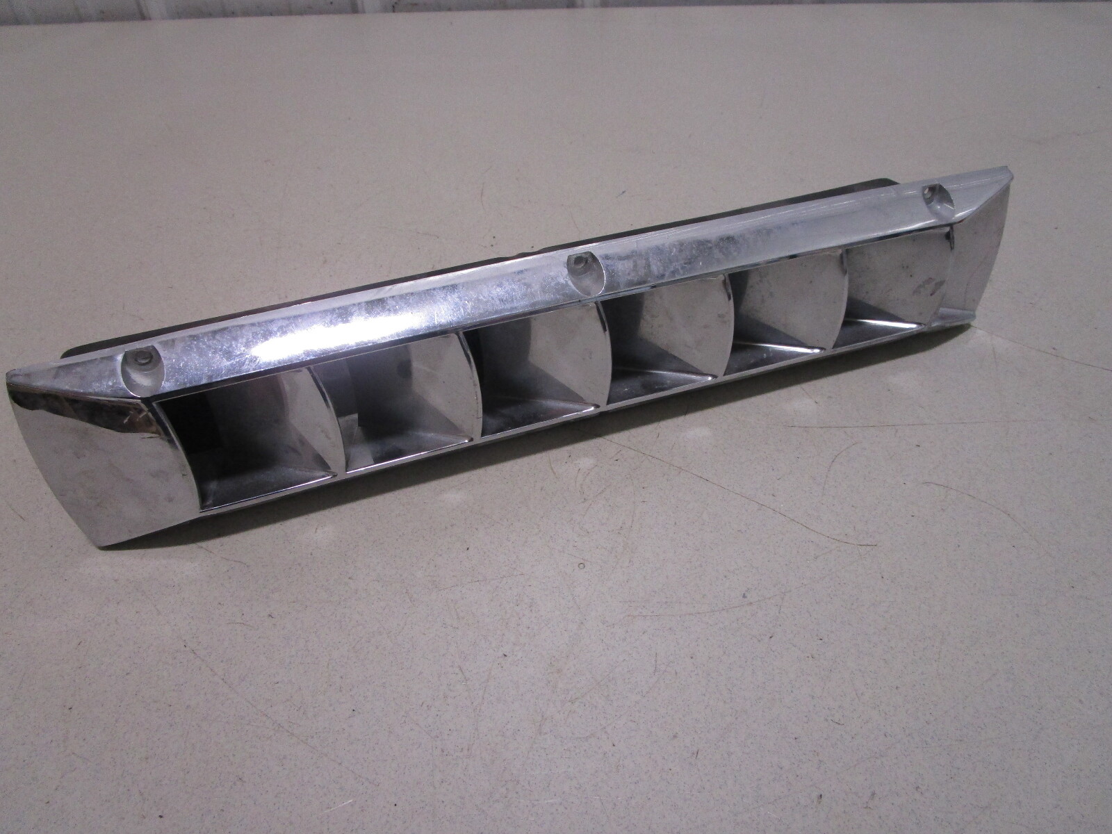The used louvered boat vent cover is made from chromed plastic and may have a couple little dings on it. There are no major cracks in it.