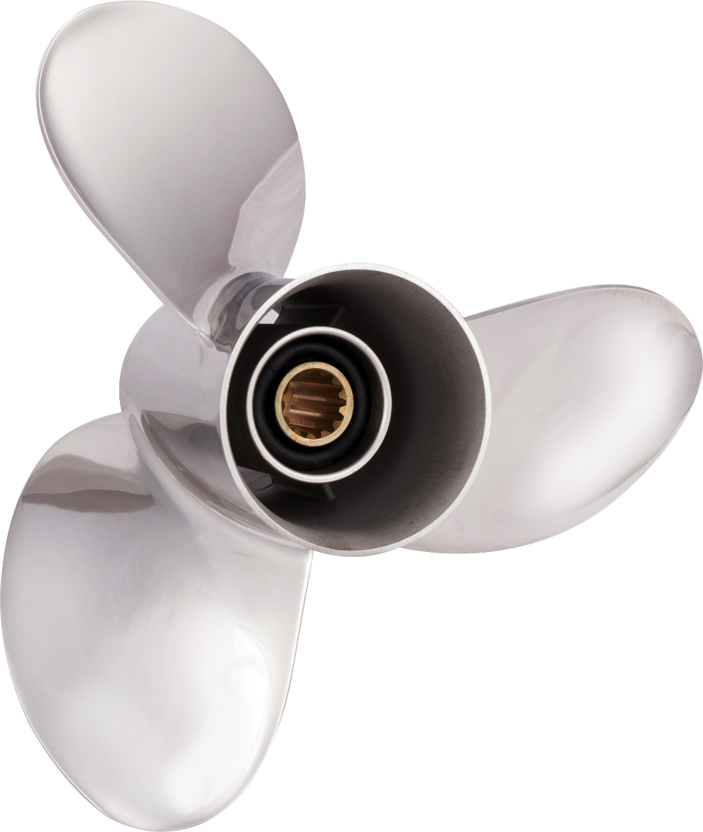 3 Blade stainless propeller for Yamaha 25-60 horsepower engines with 3-1/2" Gear Case and Honda 35-60 horsepower engines with 3-1/4" Gear Case. Both with 13 tooth spline and thru hub exhaust.