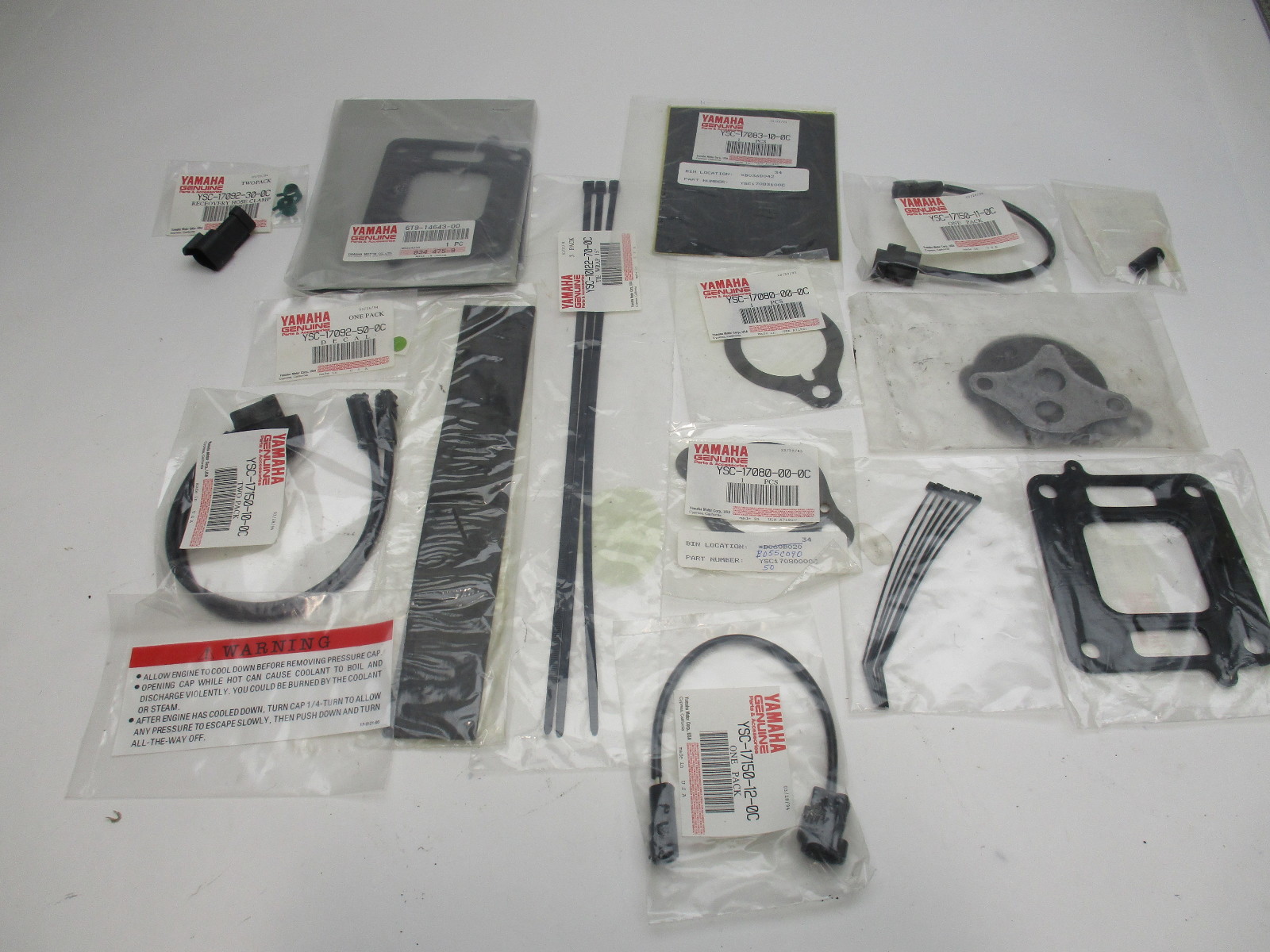 You will receive everything pictured and only what is pictured. These parts were removed from an opened Yamaha Fresh Water Cooling (FWC) kit and may be from one of the following part numbers, though we cannot confirm which exact kit they originated from: