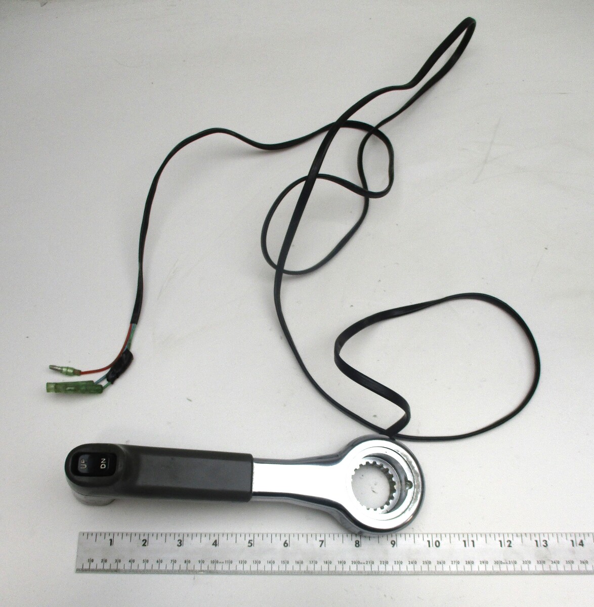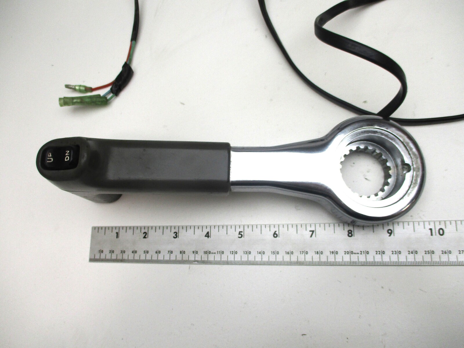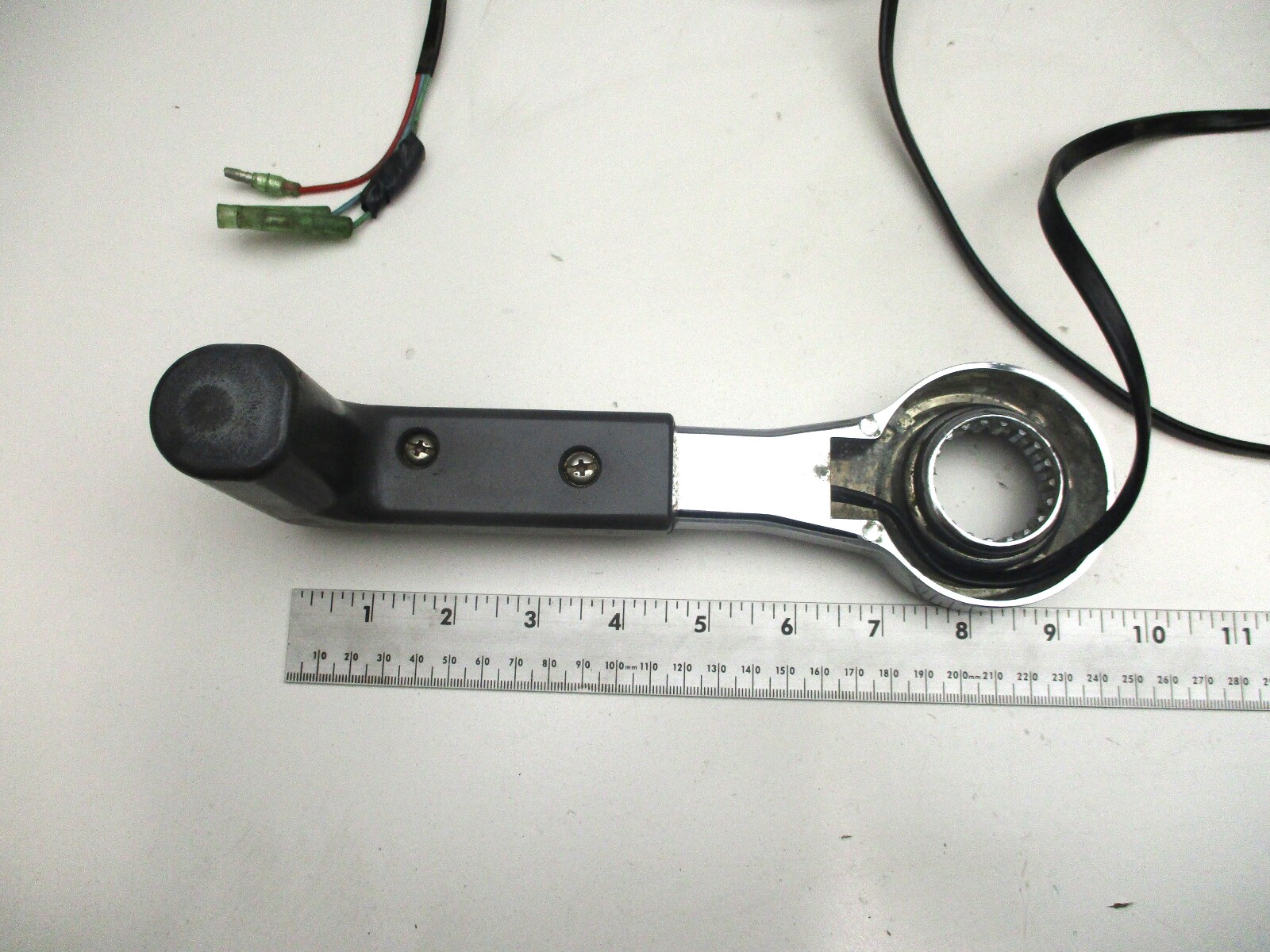 We are selling a used top Binnacle mount throttle remote control handle for Yamaha outboard motors.